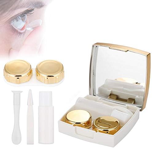 ANGGREK Set of 4 Contact Lens Case Mini Travel Contact Lens Holder Eye Care Kit Lenses Container Case Portable Mirror Box (3 Colors) (Gold)