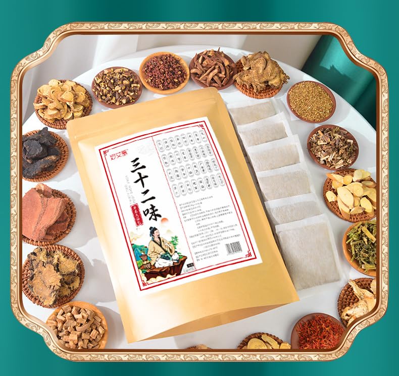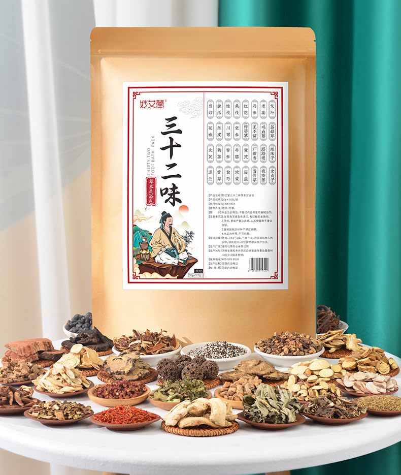 Ingredients: Each bag includes 32 kinds of Chinese herb: (Wormwood, ginger, cinnamon sticks, glutinous grass, night cross vine, tangerine peel, motherwort, astragalus, codonopsis, mulberry branch, safflower, spatholobi). Help for promoting Sleep relieve fatigue and relieving pain.