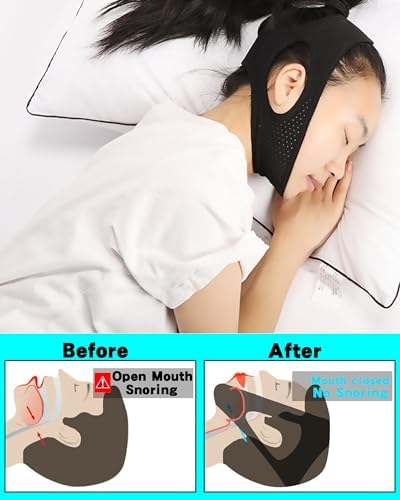 Anti Snoring Chin Strap,Adjustable Breathable Chin Strap for Snoring,Anti Snoring Devices Chin Strap for Men & Women to Stop Snoring (Black)