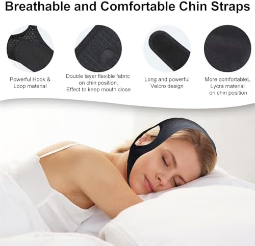 [Versatile Solution]: This anti-snore chin strap prevents snoring while addressing related sleep issues like breathing difficulties, dry mouth, and memory loss.Enjoy a better quality of sleep and keep your body healthy and mind clear.