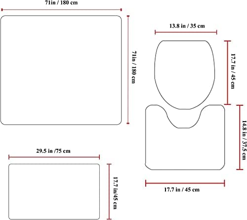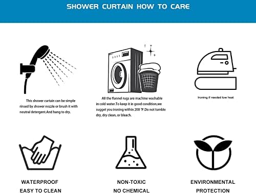 Our shower curtain is made of polyester fiber which is waterproof effect. The bathroom mat is made of flannel. It is comfortable, nontoxic and colorfast, soft and comfortable to touch, and very waterproof and durable. [Dimensions:] Waterproof Shower Curtain 72″ X 72″, thickened bathroom mat 29.5″ X 17.5″, o-toilet cover: 17.7″ X” 13.8 “, U-shaped carpet: 17.7” X 14.8 “, suitable for most standard bathrooms. [Easy to install:] We offer you 12 solid hooks for free. You don’t have to worry about how to install it. 12 reinforced top joint grommets for easy hanging; non slip bath mat/carpet and toilet lid matching. [A variety of choices:] Colorful Crystal Bathroom four piece set are very suitable for your house, motel, hotel, dormitory, etc. The design is exquisite, which can set off the high-grade atmosphere of your bathroom, which is the best choice for your decoration. [Caution:] Hand wash or machine wash in cold water, hang dry, iron at low temperature, do not expose to sunlight, do not bleach.
