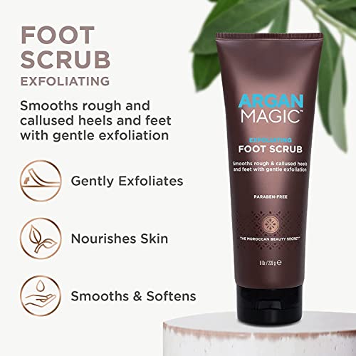 Argan Magic Exfoliating Foot Scrub for Rough & Calloused Feet and Heels – Smooths and Softens Dry Feet | Removes Dead Skin | With Argan Oil & Pumice | Paraben Free (8 oz)