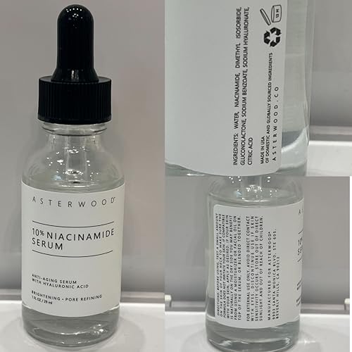 ASTERWOOD Niacinamide Serum for Face – Anti-Aging, Pore Minimizing, Hydrating – Vitamin B3 Facial Serum – with Hyaluronic Acid – Tone, Texture – 10% Niacinamide – 29 ml/1 oz
