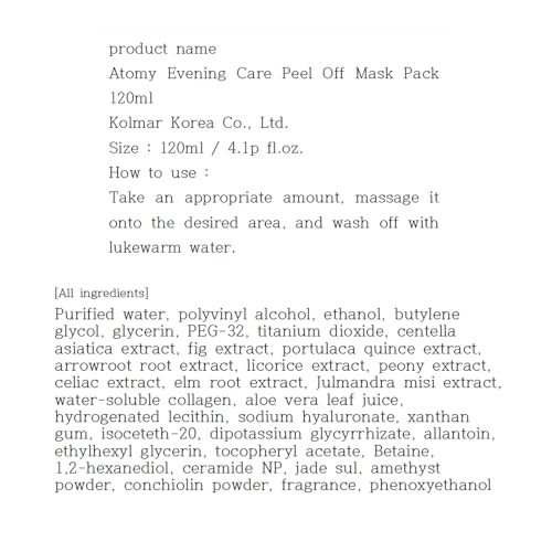Be the first to review “Atomy Evening Care Peel Off Mask Pack – Pore Tightening, Clarifying, Firming for Skincare Routine, Made in Korea”
