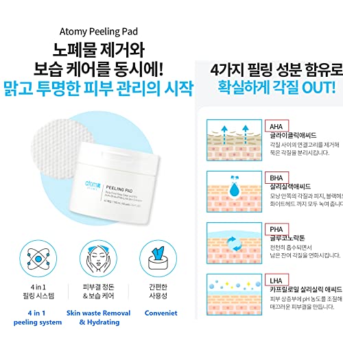 Atomy Peeling Pad – Daily Skin Care for Skin Exfoliation and Hydrating, 40 Sheets, Made in Korea