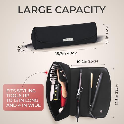AvaJex Large Hair Tools Travel Bag with Heat Resistant Mat for Flat Irons, Curling Iron, Straighteners – Hair Tools Bag with Interior Pockets for Haircare Accessories