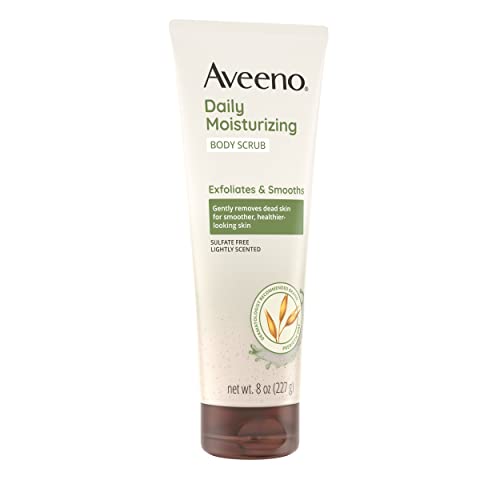 Gently exfoliate and remove dead skin with Aveeno Daily Moisturizing Body Scrub. This exfoliating body scrub from a dermatologist-recommended skin care brand for over 70 years works to exfoliate dead surface layers for smoother, healthier looking skin in just one week. Formulated with prebiotic oat to leave skin feeling nourished, the lightly scented, body scrub with moisturizing ingredients is soap-, sulfate-, paraben-, and dye-free. To use, squeeze the body scrub onto a wet washcloth or hands, work into a rich, creamy lather, and rinse. For results, use 3-4 times per week.