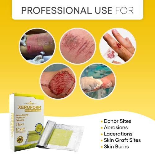 AWD Medical Xeroform Petrolatum Dressing 5×9 – Non-Adhering Gauze Pads – Fine Mesh Gauze Patch Sterile – Healthcare Supplies for Wound Care, Burns, Lacerations, & Skin Grafts Aide (Box of 25, 5″x9″)