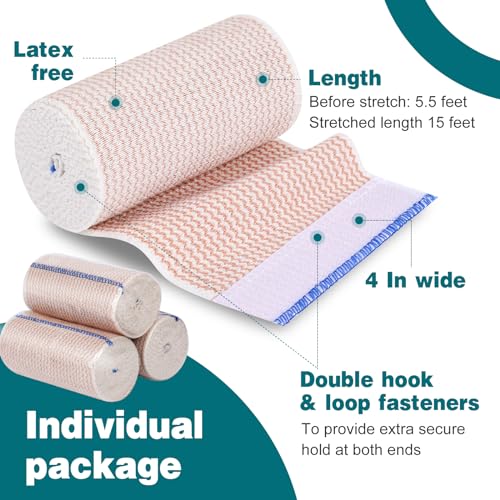 🎁【Individually packed】The individually packaged 6 packs compression elastic bandage is a perfect complement to the first aid kit and home wound care products. Our bandages are a standard length of 4 feet, and the stretched length is 15 feet for maximum coverage. And is easy to store and carry.