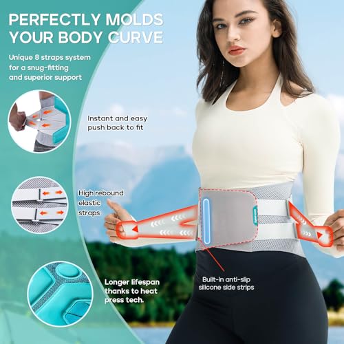🔥SUPERIOR LUMBAR SUPPORT – Featuring an ergonomic wrap-around design with two custom-made 26-degree curved steel stays, our back support belt replicates the spine’s natural curvature, ensuring exceptional back support at home, work, and on the go. Additional anti-slip steel stays and bionic soft stays help keep the brace in place and strengthen support to the lateral muscles of the waist, providing firm support for everyday use.