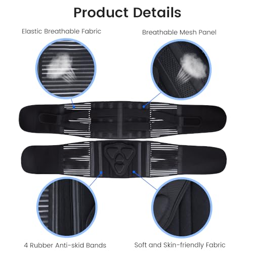 👍🏻【THOUGHTFUL DESIGN】Two elastic straps provide extra compression around the lower back, and silicone anti-skid bands prevent the brace from rolling up during activities. Wide, PVC touch fasteners ensure strong adhesion without scratching your skin or damaging clothes.