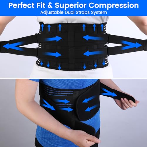 Back Brace for Lower Back Pain Women & Men, Back Support Brace for Sciatica Pain Relief, Lumbar Support Belt for Herniated Disc Relief,Scoliosis, with 4 Memory-Aluminum Stays & 2 PP Stays (L)