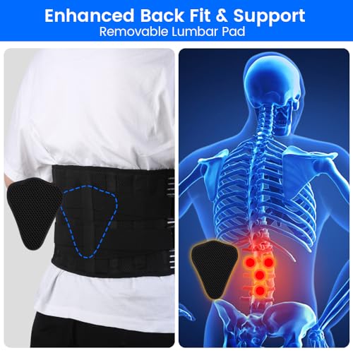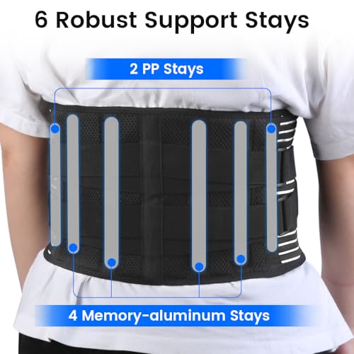 👍🏻【PREVENT INJURIES & IMPROVE MOBILITY】Equipped with 4 memory-aluminum stays and 2 PP stays, the brace offers 360° stronger vertical support to prevent excessive rolling of your muscles and reduce pressure on your discs. Ideal for weight lifting, long periods of standing or sitting, and daily activities.