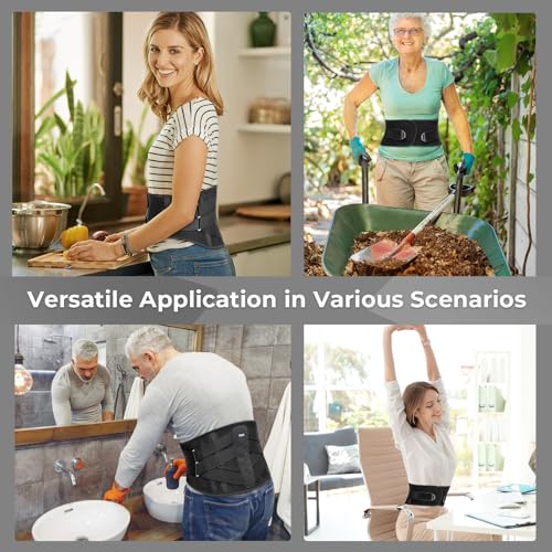 The Most Robust Support and Stability: Back support brace features a new generation ergonomic support system (1 biomimetic lumbar vertebral plate + 4 memory aluminum brackets + 2 flexible springs). The contours conform to the natural curve of the lumbar spine, designed to be distributed widely and evenly across a large area, providing robust lumbar support, stability, and restricting unnecessary back movements that may lead to lower back pain.