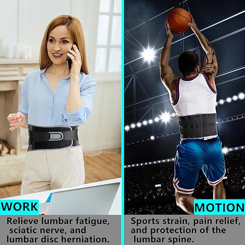 【COMFORTABLE BACK SUPPORT】- This Lower Back Brace provides excellent support to the lower back with its 4 memory support strips and 2 steel springs. This belt offers 360° vertical support, preventing excessive rolling of muscles and decreasing pressure on the discs. It ensures a comfortable and secure fit, allowing you to move freely without any discomfort.