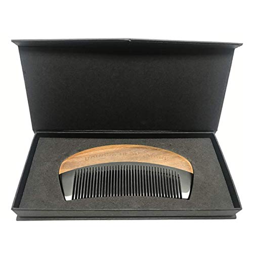 Badass Beard Care Black Series – Fine Tooth Ox Horn Comb For Men – 100% Ox Horn & Sandalwood, Hand Made, Sanded and Polished