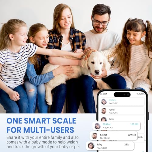【FOR THE WHOLE FAMILY & BABE MODE】This scale supports multi-user tracking, it can register up to 24 users in Fitdays App and automatically recognize the user. It also features a baby mode, you can keep an eye on the youngest members of the family. No need to juggle multiple devices – get a full household of customized wellness data centralized in one place.