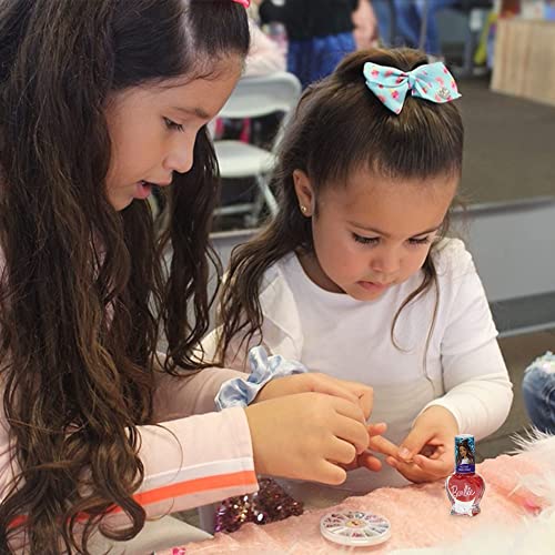 EVERYTHING YOU NEED: The nail polish set includes 15 peelable nail polishes in various colors, 1 gem wheel of assorted colored gems, 1 wooden cuticle stick, and 1 nail file with Barbie characters. Your child will have all the supplies needed to create the perfect mani-pedi!