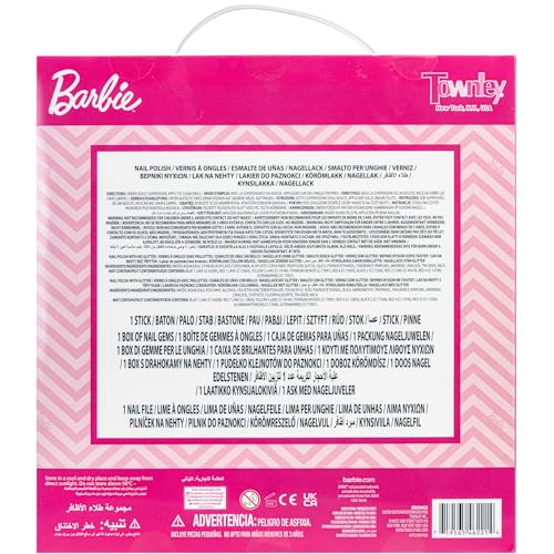 Barbie Movie 18 Piece Set Kids Water-Based Nail Polish Activity Makeup Set, Includes Nail Polish with Nail Gems Wheel and Nail File for Parties, Sleepovers and Makeovers, Townley Girl