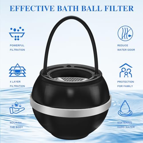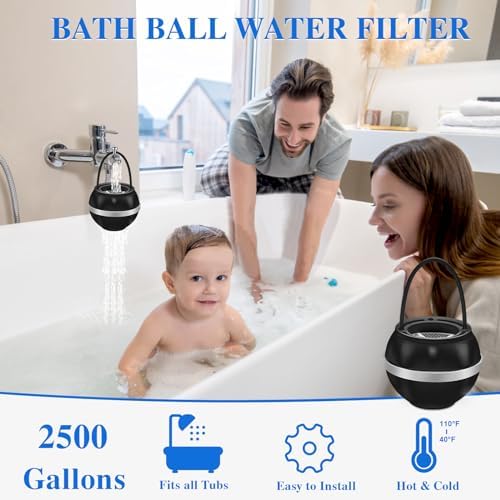 Bath Ball Filter-Bathtub Water Filter Remove Chlorine Improve Water Quality to Softer, Smoother Skin, Shower,BPA Free-2,500 Gallons of Filtration(Balck/Silver)
