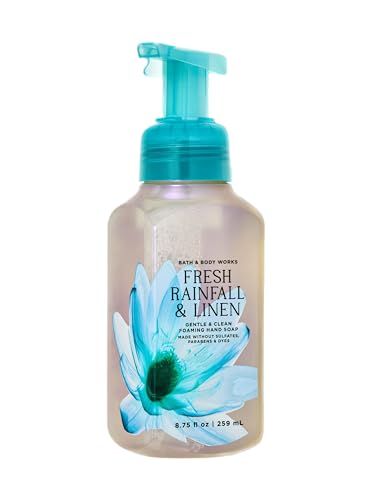 Bath + Body Works Fresh Fruity Favorites Hand Soap – Trio of 3 Scented Soaps with pumps. Set includes: Iced Lemon Pound Cake + Pink Peach Blossoms + Fresh Rain Fall and Linen (8.75 ounces each). Each soap pumps out light luxurious foam; Made without parabens, sulfates, or dyes. Iced Lemon Poundcake smells like: a rich, tangy tea time dessert with fragrance notes of sugary glazed icing, pure lemon zest, and fluffy pound cake. Fresh Rainfall and Linen smells like: a sprinkling rain shower in the spring time with fragrance notes of refreshing rain, lilies, and linens. Pink Peach Blossom smells like: a bright, fruity spring garden with fragrance notes of peach nectar, magnolia petals, and mandarin orange.