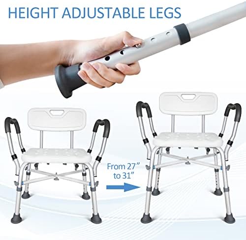 [Durable, Reliable, Heavy Duty] – KingPavonini shower chairs with arms are made with premium aluminum alloy frames. This sturdy shower chair comes with a reinforced crossing bar and back support for extra strength up to 550LBs,is one of the best shower chair for Elderly, Adults, Disabled or people recover from surgery.