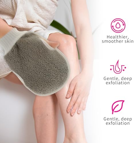 [2-in-1 Design] Our exfoliating mitt is double-sided, one side is made of natural linen fibre for deep exfoliation and the other side is for gentle exfoliation, you can switch between them as needed, it’s easy to use and saves your budget.