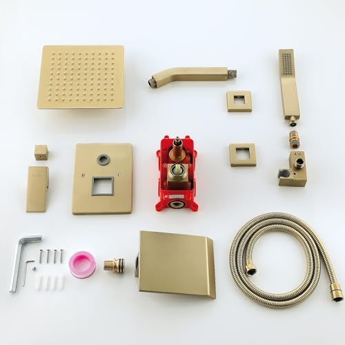 EASY OPERATION: 3-Function Brushed Gold Shower Fixtures built-in diverter,You can switch the knob to open rain shower head or handheld spray or Tub Faucet as you like;