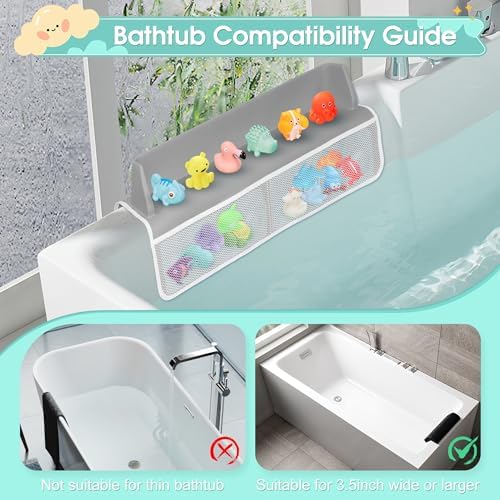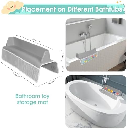 Bathtub Splash Guard for Tub Kids, 22″ Shower Water Guard Play Shelf, Baby Bath Toy Storage and Organizer, 8 Suction Cups Attach to BathTub, Grey