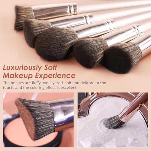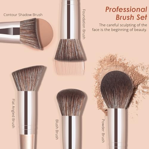 MAKEUP BRUSH SET PROFESSIONAL: Dive into professional beauty with our makeup brush set, featuring 5 face make up brushes for flawless application and 7 eyeshadow brushes for perfect blending. Handcrafted for precision, these brushes cater to all your makeup needs.