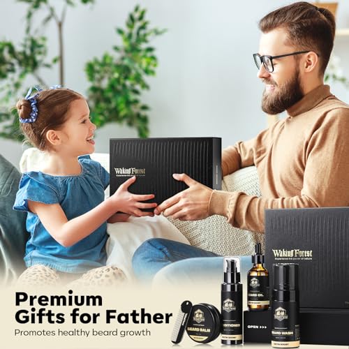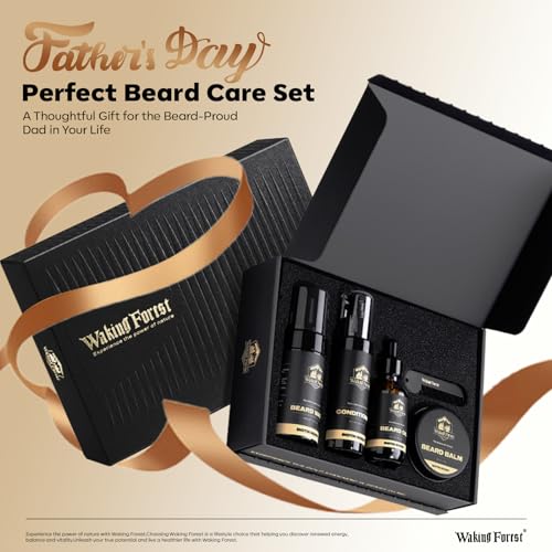 👍[Premium Beard care Kit] Our Waking Forest Beard care Kit tailored just for men. This Premium mens caring kit includes a 60ml beard Moisture oil, a 100ml beard wash, a 100ml beard conditioner, a 60g beard balm, and a metal beard comb. Everything a man needs to cover his entire beard care Moisture.