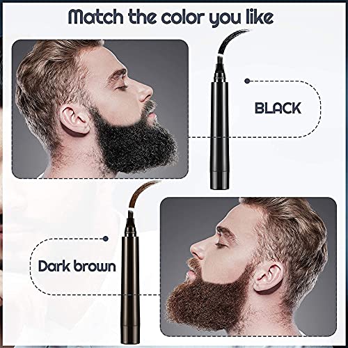 Beard Pencil Filler for Men, Beard Pen Creates Natural Looking Beard Long Lasting Waterproof Men Facial Hair Engraving Styling Tool (Black)