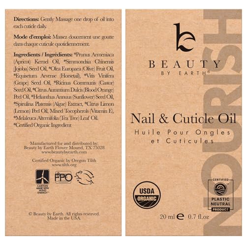 Beauty by Earth Organic Nail and Cuticle Oil – USA Made Nail Oil for Growth and Strength, Nail Treatment for Damaged Nails, Cuticle Repair and Nail Care