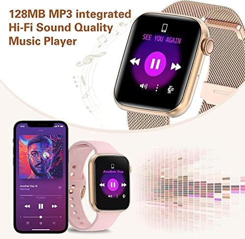 【Bluetooth Call & AI Voice】Are you still troubled by missing important messages or calls? this smart watch is equipped with the Latest Bluetooth chip, you can not only receive notifications from SMS and SNS, but also answer/dial calls easily. Moreover, there are voice assistant, music player[128MB storage], women’s health reminder and more useful features waiting for you to explore~