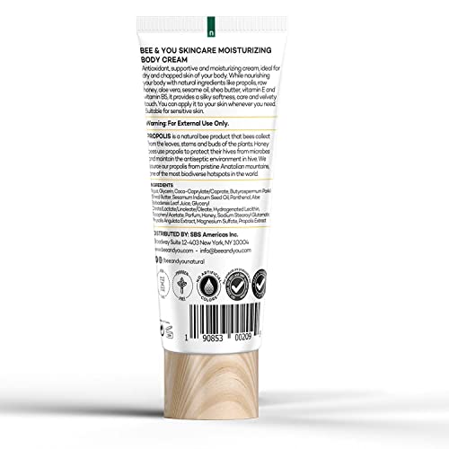 BEE and YOU Ultra Hydrating Body Cream Moisturizer, Shea Butter, Argan Oil, Vitamin B5, Raw Honey and Propolis Extract, 100% Natural, Fast Absorbing Skin Care, 3.38 fl. Oz