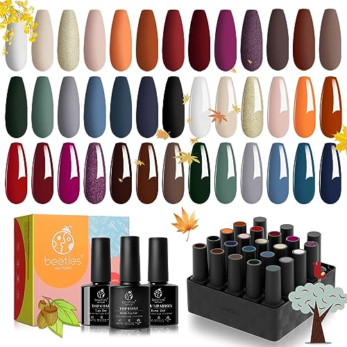 Beetles 23 Pcs Gel Nail Polish Kit- Glowing Attraction Collection Orange Burgundy Red Purple Gel Polish Set Gray Blue Green Soak Off Uv Nail Lamp Base Top Coat Gifts for Women