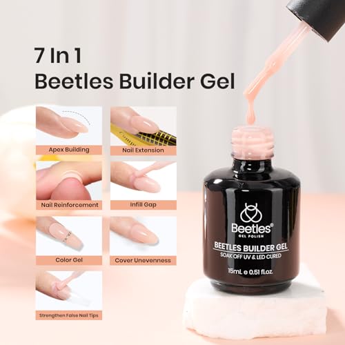 Beetles Builder Gel Polish, 7 in 1 Nude Pink Builder Strengthener Gel Hard Gel Jelly Gel light pink Beetles Builder Gel for Nail Building Extension Gel Salon DIY Manicure Nail Art Design for Women