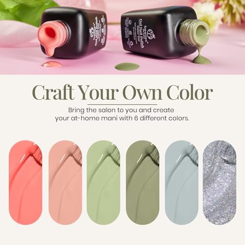 beetles Gel Polish SOUTHERN BELLE Glitter Nude Gel Polish Set – 6 Pcs Coral Green Light Blue Gel Polish Kit Soak off Uv Nail Gel Base and Top Coat Needed Varnish Salon Nail Art Design