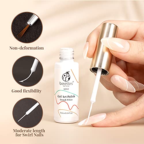 beetles Gel Polish Swirl Nail Art Gel White Gel Liner Nail Polish White Nail Polish 1 pcs 7ml Classic White Color Gel Art Paint for Thin French Line Nail Art Polish Soak off Uv Lamp Manicure Salon
