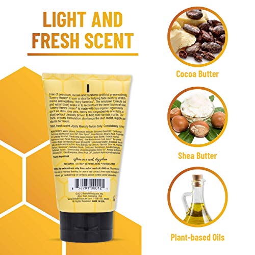 Tummy Honey Butter (Stretch Mark Prevention) 4oz The Original Tummy Honey Butter was launched in 1999 and is the gold standard by which other stretch mark prevention butters are measured. With many thousands of satisfied customers, Tummy Honey Butter has proven to be successful with mothers all around the world. Originally designed by a real mom, stretch-mark free after three kids. You’ll love the light, fresh scent and non-greasy feel following application to the tummy. Tummy Honey Butter also helps to soothe itchy tummies. Formulated with several key natural and organic ingredients including cocoa, shea, olive, aloe vera and jojoba. Tummy Honey Butter contains no water or inexpensive fillers like petroleum, lanolin (an animal by-product), or mineral oils and is free of parabens which are artificial preservatives. Use twice daily. Consistency is key! Tummy Honey Cream (Stretch Mark Fading) 4oz Free of petroleum, lanolin, and parabens (artificial preservatives), Tummy Honey Cream is ideal for helping to fade existing stretch marks and soothing “itchy tummies”. The emulsion formula (oil and water base) soaks in to reconstruct the inner layers of skin. Tummy Honey Cream is made with key organic ingredients such as shea, aloe vera, honey, and siegesbeckia orientals, a plant extract clinically proven to help fade stretch marks. Our thick, creamy formulation also keeps the skin moist, supple and elastic for hours. Mild, fresh scent. Apply liberally twice daily. Consistency is key!