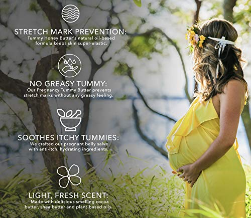 STRETCH MARK PREVENTION: Tummy Honey Butter’s natural oil-based formula keeps skin super-elastic.