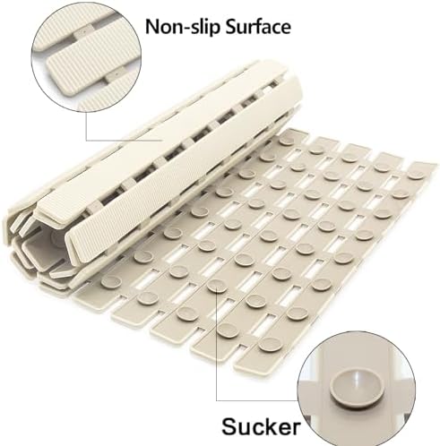 SUPER NON-SLIP:There are over 160 suction cups at the bottom that cling very well and keep the mat in place at all times without slipping.Slotted panels and textured surface design also has a good anti-skid performance, providing a safe, comfortable footing for protection against falls, even if it touches the shower get it will not slip.