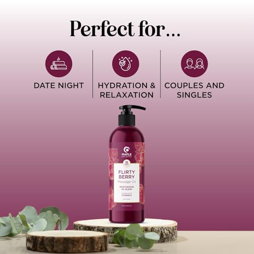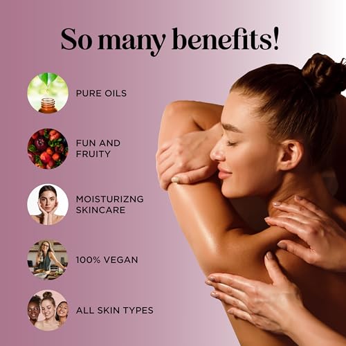 Berry Sensual Massage Oil for Couples – Fun and Fruity Full Body Massage Oil for Date Night with Smooth Gliding Coconut and Sweet Almond Oil with Tempting Berry Scent – Non GMO Gluten Free and Vegan