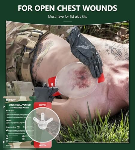 First Aid Kit: Chest seals have been rigorously tested and designed to perform under extreme conditions, especially in cases of excessive bleeding, heavy sweating, or extremely humid environments. Size: H 6.3″ x W 4.1″, easy to fit in your tactical IFAK bag. Chest seal size: H 6.5″ x W 6.5″.