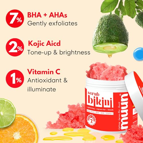 Bikini Area Exfoliator, 2% Kojic Acid Vitamin C & 7% AHA/BHA Even Skin Tone & Ingrown Hair for Rectum Intimate Butt Underarm