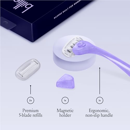 Billie Razors for Women Shave Kit – Women’s Razor + 2 x 5-Blade Razor Refills + Magnetic Holder – Moonbeam