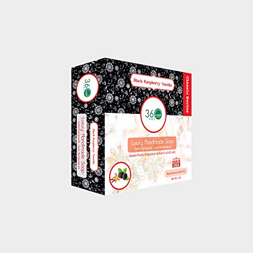360Feel Black Raspberry Soap -Large 5oz Organic Castile Handmade Soap bar -Refreshing Sweet Fruity fragrance- Pure Essential Oil Natural Soaps- Great as Anniversary Wedding Gifts – Made in USA- Christmas Stocking Stuffers- Holiday Gifts – Santa Claus Gifts – White Elephant gifts- Valentine Gift – Easter Gift – Memorial day – Fathers Day Gift Fruity Soap – Refreshing Soap – Essential Oils- Exfoliation Soaps – Lavender Oil – Natural Organic Soaps – Homemade soap – Handmade Soap HANDMADE NATURAL SOAP (CLASSIC SERIES)- COLD PROCESS – LOW TEMPERATURE – ESSENTIAL OIL Each handcrafted soaps are made with care and love using the finest ingredients available. We use proprietary Cold Process method with low temperature preparation to preserve the essential oils and other ingredient efficacy. 360Feel – The Premium Amazon Exclusive Brand. Pamper yourself all around (360 degree) with Natural Goodness of the Earth. Indulge in our one-of-a-kind handcrafted collections Each handcrafted soaps are made with care and love using the finest ingredients available. We use proprietary Cold Process method with low temperature preparation to preserve the essential oils and other ingredient efficacy. >> Luxury Handmade Soap Bar with Sweet Fruity, fragrance to fall in love with. Use it as Shampoo Bar and Body Bar >> Biodegradable perfect as Camping soap too! Perfect for Romantic, Anniversary, Wedding Gifts, favors >> Plant Oil – Essential Oil based traditional Lye Soap. NO SLS (Sodium Laureth Sulfate) – NO Palm Oil – NO Phthalate – NO Paraben >> Vegan – Gluten Free – Cruelty Free. Acne treatment, Therapeutic Relaxing recipe body wash for Great Gift Idea, Gift basket for kids, Gifts for women >> Handmade soap Proudly Made in USA – Made with fresh Premium Natural Ingredients – lush natural glycerin castile Soap for normal to dry skin >> Cold Processed, low temperature formulation for maximum Essential oil efficacy. Standardized Base Formulation perfect for sensitive skin. Use as a Shampoo Bar or Body Bar >> Exclusively available at Amazon. Family Owned & Operated in USA 360Feel – The Premium Amazon Exclusive BrandPamper yourself all around (360 degrees) with Natural Goodness from the wonders of the Earth. Indulge in our one-of-a-kind handcrafted products made with care and love using the finest ingredients available. Supporting and promoting craftsmen and their work doing things the good old fashioned way!!