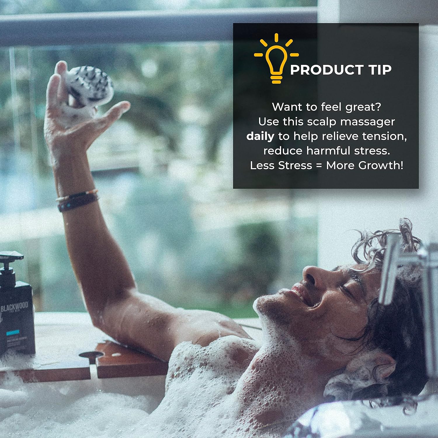 JAPANESE ROOTED: Blackwood For Men’s shampoo & conditioner use natural Botanical Boosts (Green Tea, Clove Flower, Peach Leaf, Pro-Vitamin B5) to balance oil, nourish scalp, promote hair growth, condition, hydrate, protect, add elasticity, prevent damage, and leave fuller, voluminous locks. Enhance growth with scalp massager/scrubber, stimulating circulation for nutrient absorption.