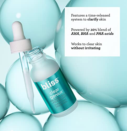 Bliss Clear Genius Clarifying Overnight Liquid Peel – 1 Fl Oz – Clear Pores & Exfoliate Skin – Non-Irritating – Clean – Vegan & Cruelty-Free