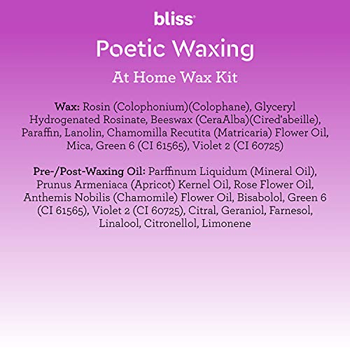 Bliss Poetic Waxing At Home Wax Kit – 5.3 Fl Oz – Microwavable Stripless Wax Hair Removal Kit – Fragrance Free – Safe for All Skin Types – 6 PC Set